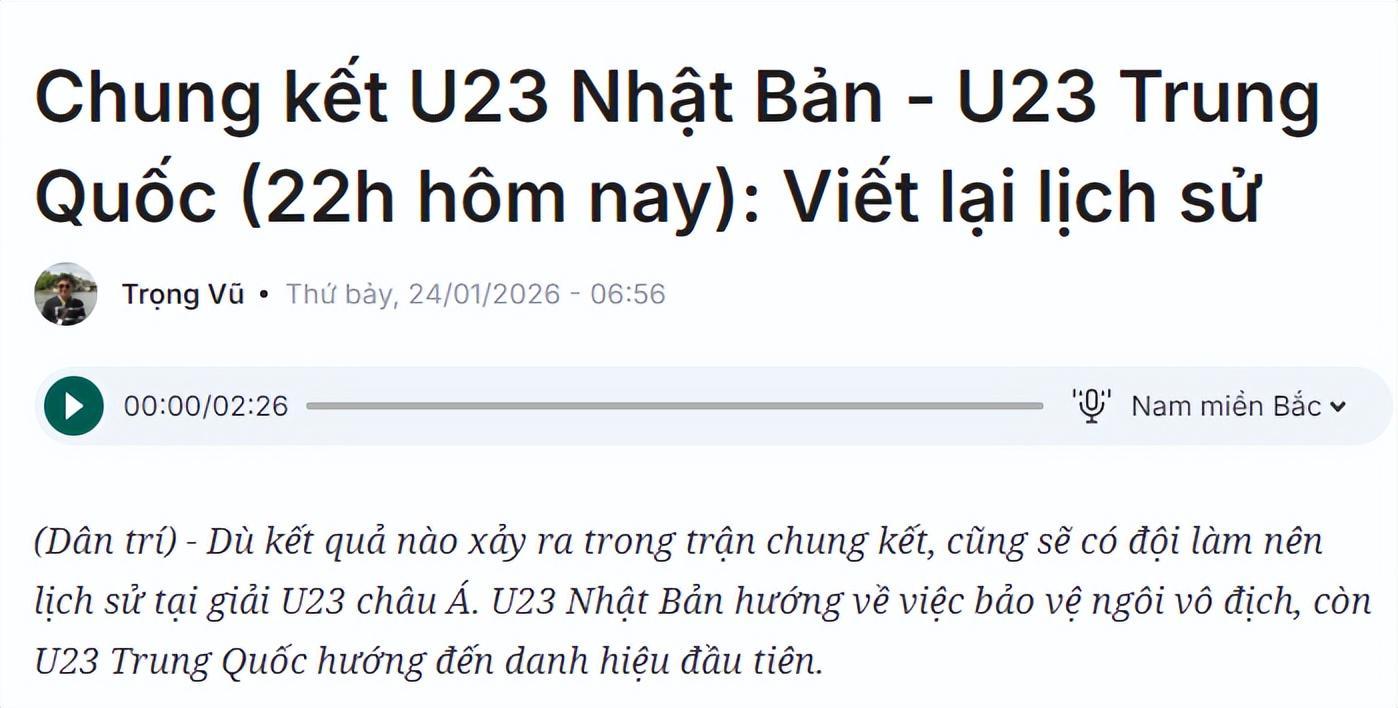 越媒Tuoitre发文(上图)预测这场决赛,认为日本队将以压倒性优势战胜中国U23。